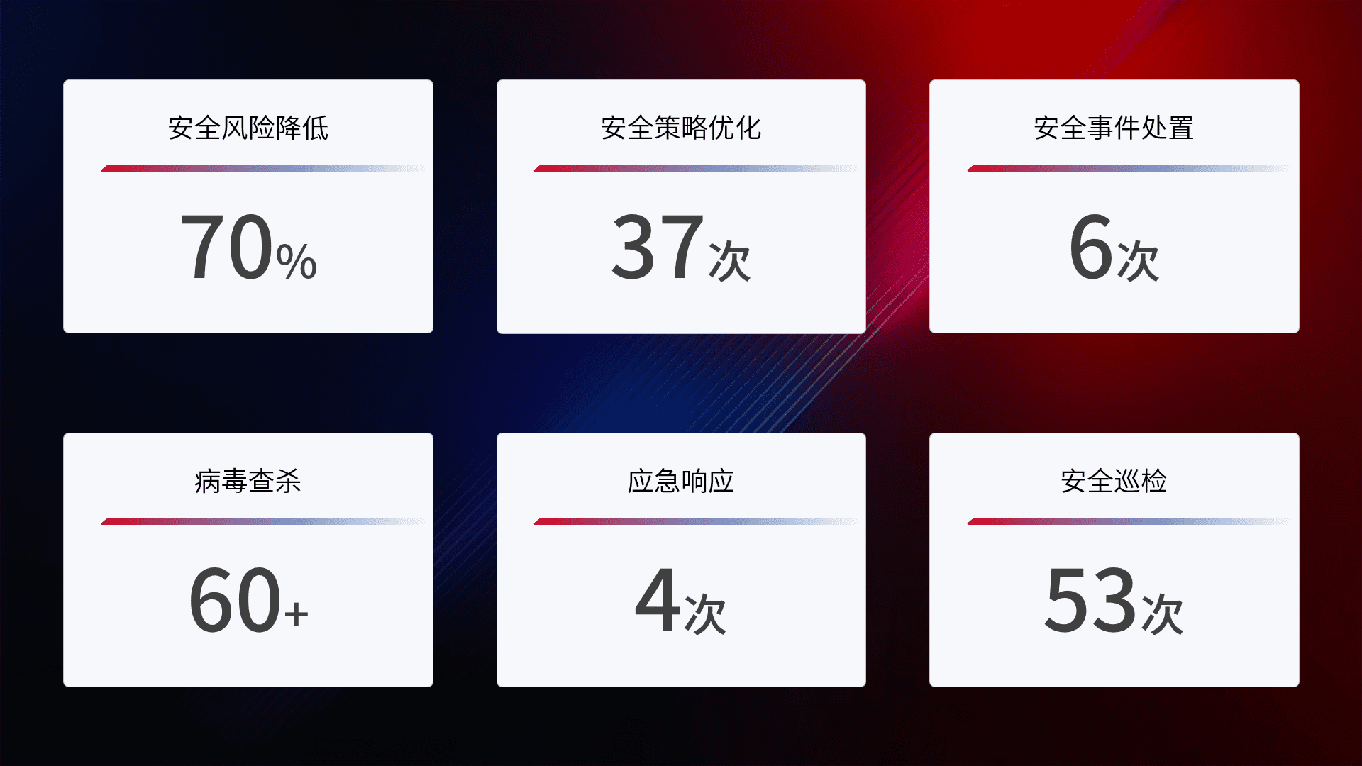 综合报告与文档服务: 定期提供安全事件处置报告、、周/季度总结报告和年度总结报告;详尽的文档服务可帮助客户了解网络安全状况,,支持决策制定和流程优化。。